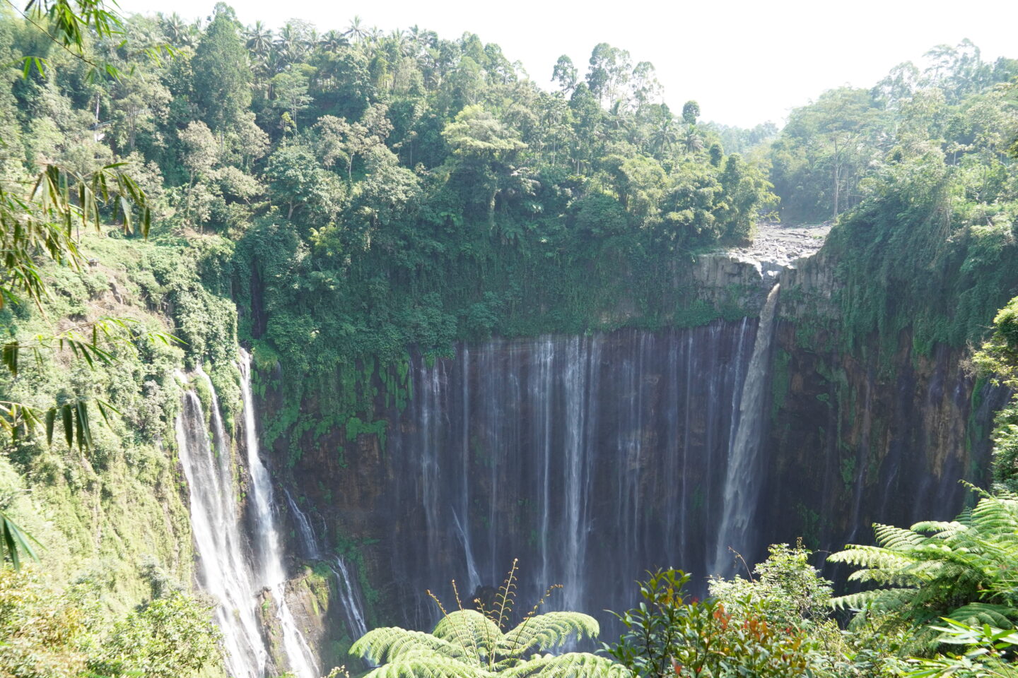 De ochtend na onze aankomst stond direct de eerste activiteit op de planning. We gingen namelijk de hele dag op pad met een driver voor een watervallentour. Nu moet ik zeggen dat je voornamelijk één hele bekende waterval bezoekt en onderweg nog wat kleintjes tegenkomt. De bekende waterval waar ik het over heb is de Tumpak Sewu. Bij aankomst kan je eerst de waterval recht van voren aanschouwen en kijk je zo de diepte in, want met zijn 120 meter hoogte kan je met recht zeggen dat je een heel eind naar beneden moet kijken voor hij de grond raakt.